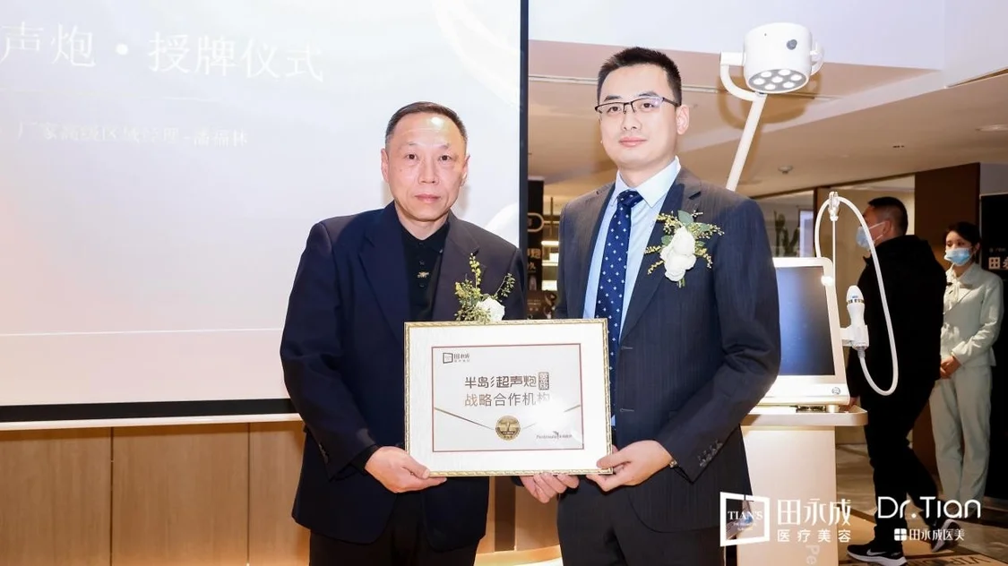田永成醫(yī)美品牌創(chuàng)始人、集團(tuán)董事長田永成主任親臨現(xiàn)場,攜手戰(zhàn)略合作廠家共同揭幕超聲炮黃金版,權(quán)威解讀超聲炮升級內(nèi)核,分享時代先進(jìn)抗衰新理念。